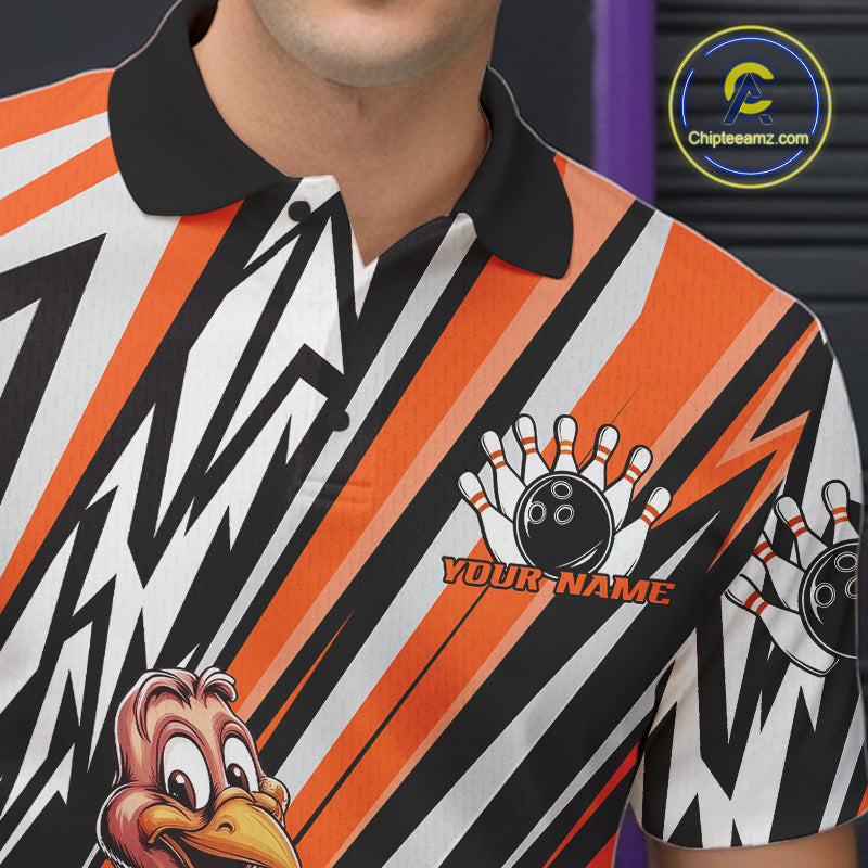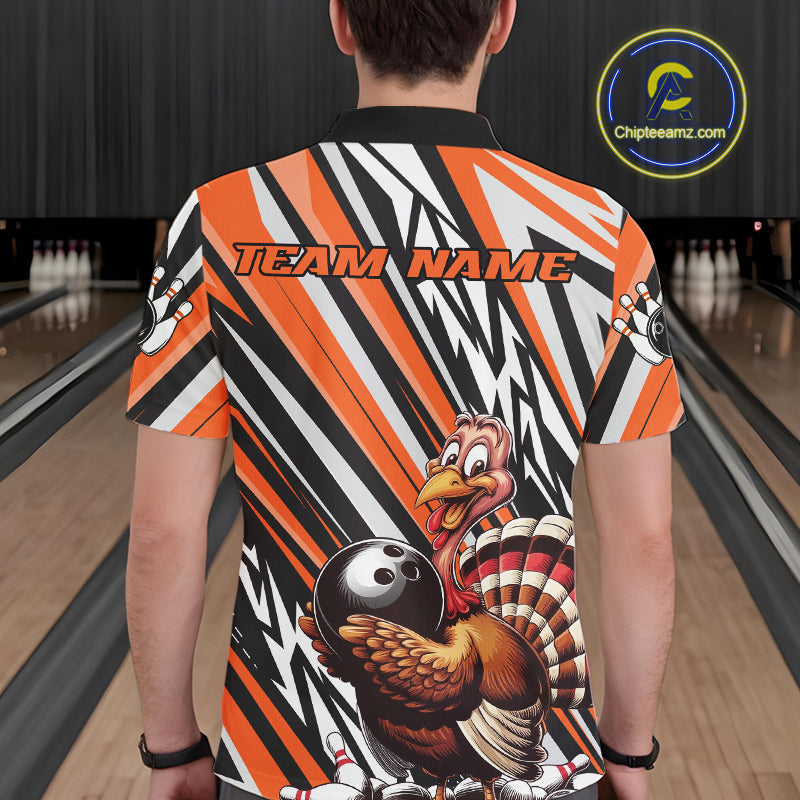 Custom Orange Funny Thanksgiving Turkey Bowling Team Men Polo Shirts, Bowling Jerseys IPHW9721