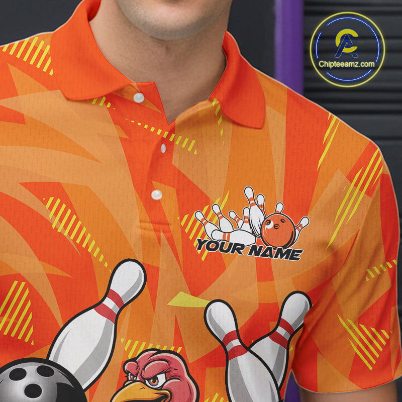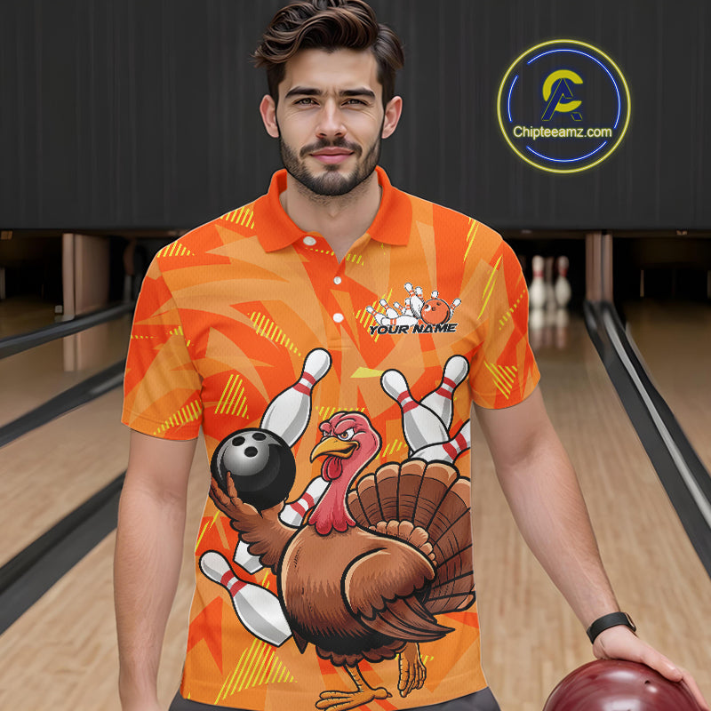 Custom Funny Thanksgiving Turkey Bowling Men Polo Shirts, Bowling League Shirt IPHW9769