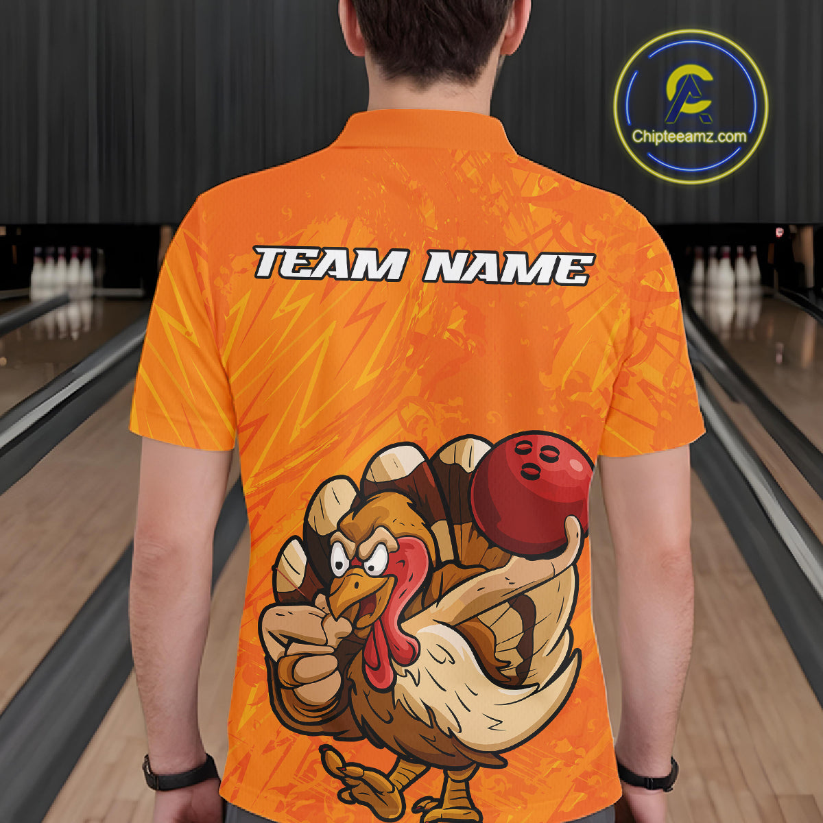 Custom Funny Thanksgiving Turkey Bowling Men Polo Shirts, Bowling League Shirt IPHW9770