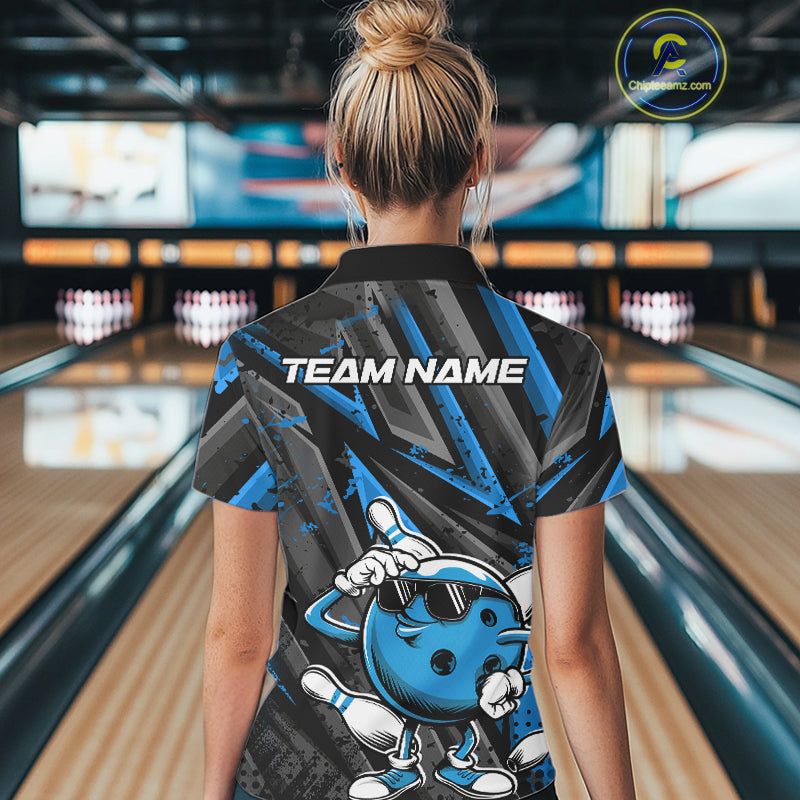 Black And Blue Funny Custom Bowling Jerseys, Cool Bowling Polo Shirts For Women IPHW9362