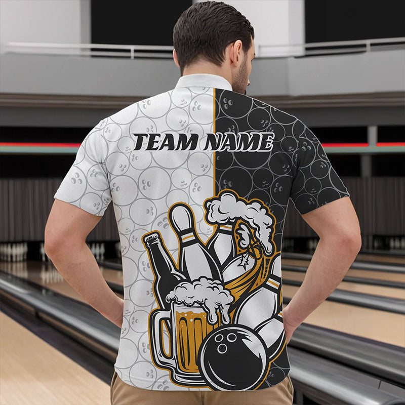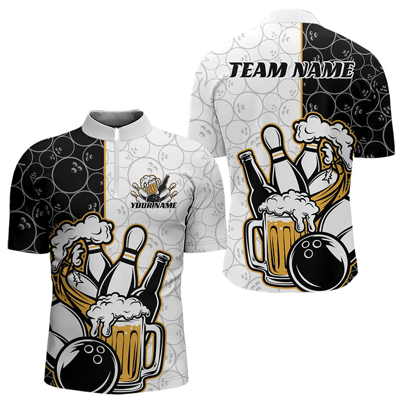 Custom Funny Bowling And Beer Team Bowling Quarter-Zip Shirts For Men, Bowling Pattern Shirt IPHW8891