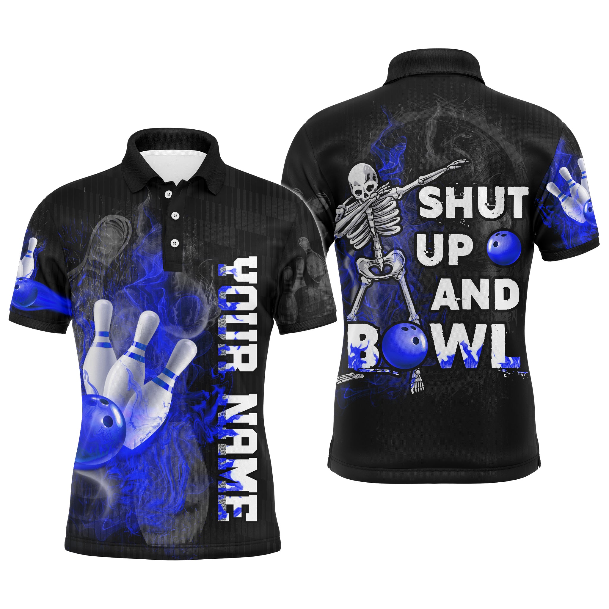 Shut Up and Bowl - Funny Polo Bowling Shirt Men Personalized Flame Skull Bowler Jersey NBP19
