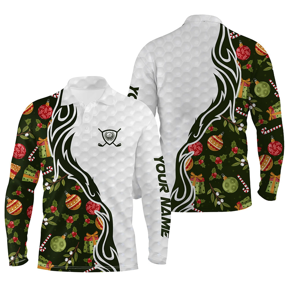 Custom Green Christmas pattern Golf Polo Shirts For Men, Personalized Golf Team Jerseys NQS8922