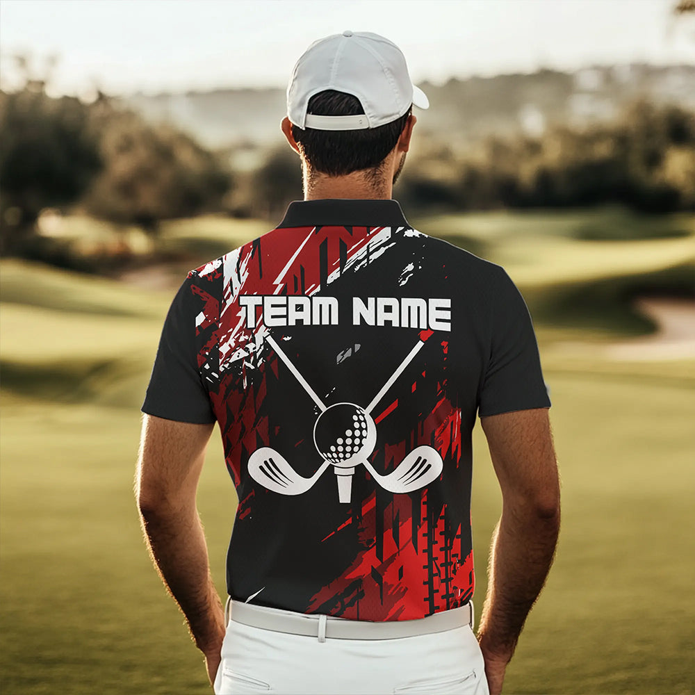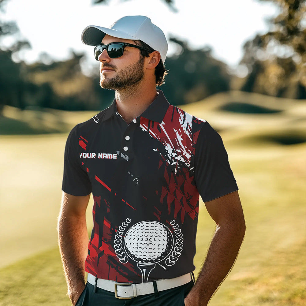Black and Red Mens Golf Polo Shirt Custom retro golf ball clubs golf team league jerseys NQS9455