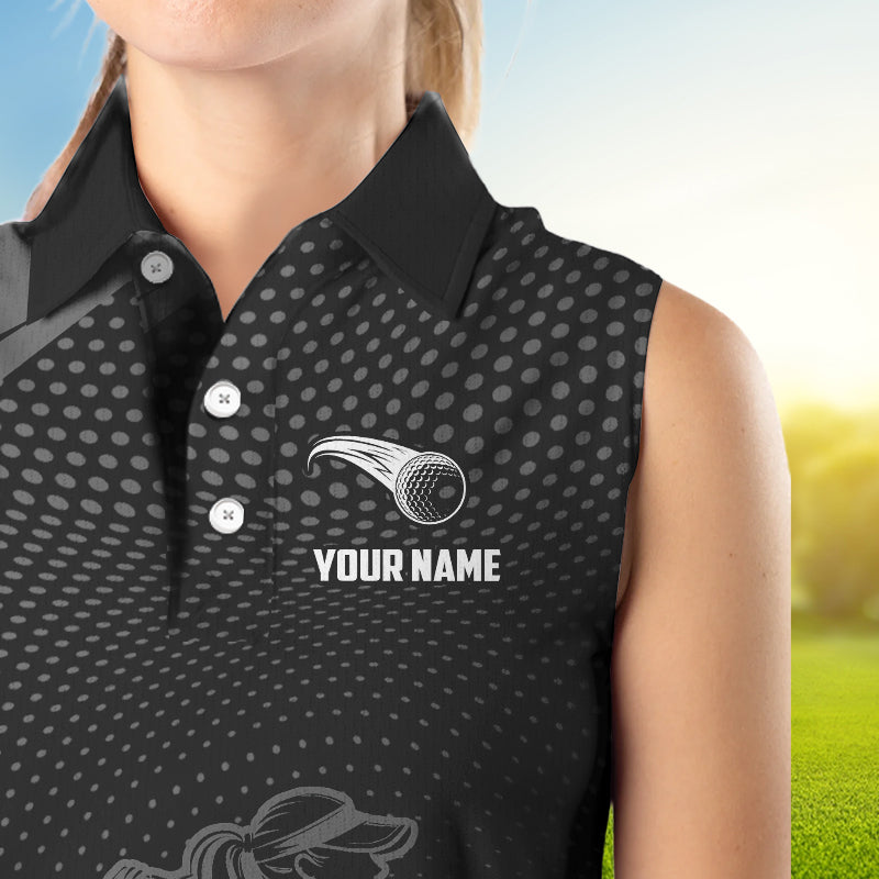 Womens golf shirts sleeveless Custom Team Name golf tops for ladies, unique golf gifts | Black NQS9748