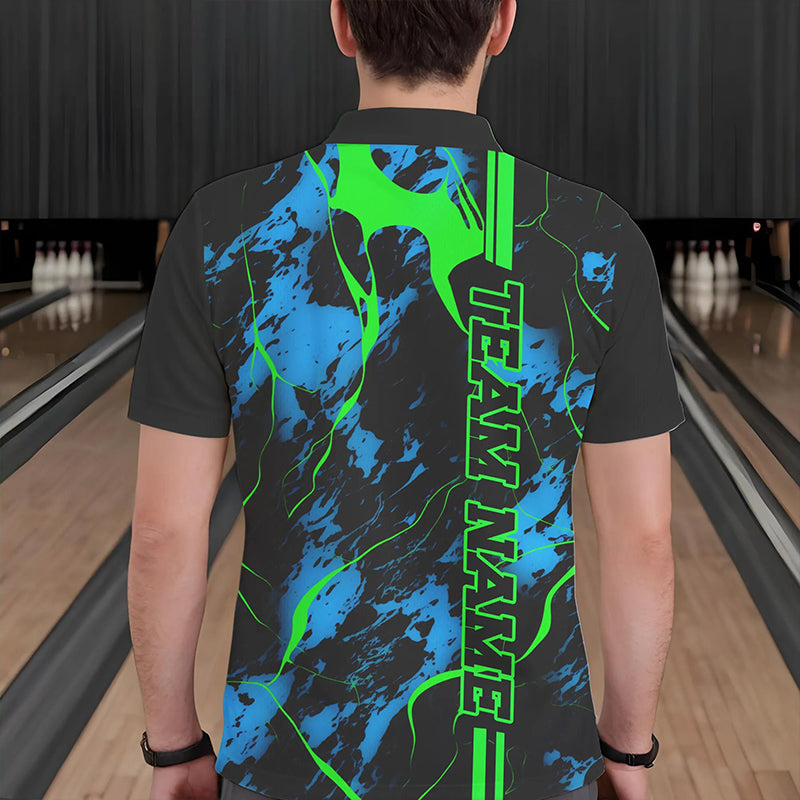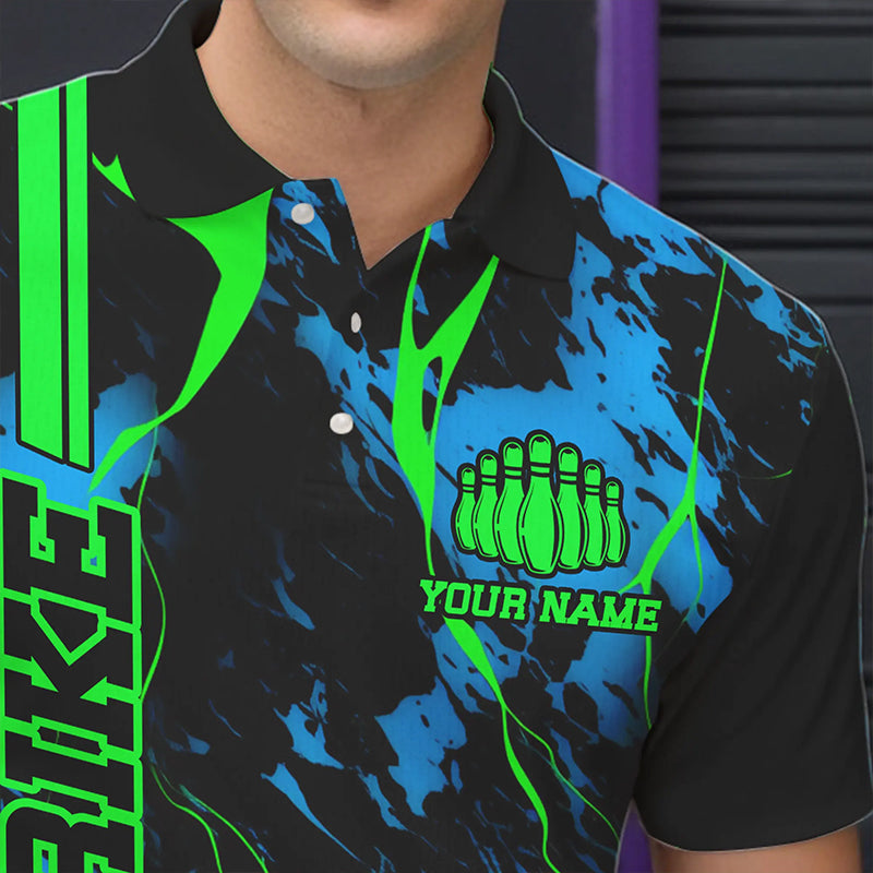 Black, Green And Blue Strike Bowling Polo Shirts, Custom Mens Bowling Team Shirts Bowling Jerseys IPHW5263