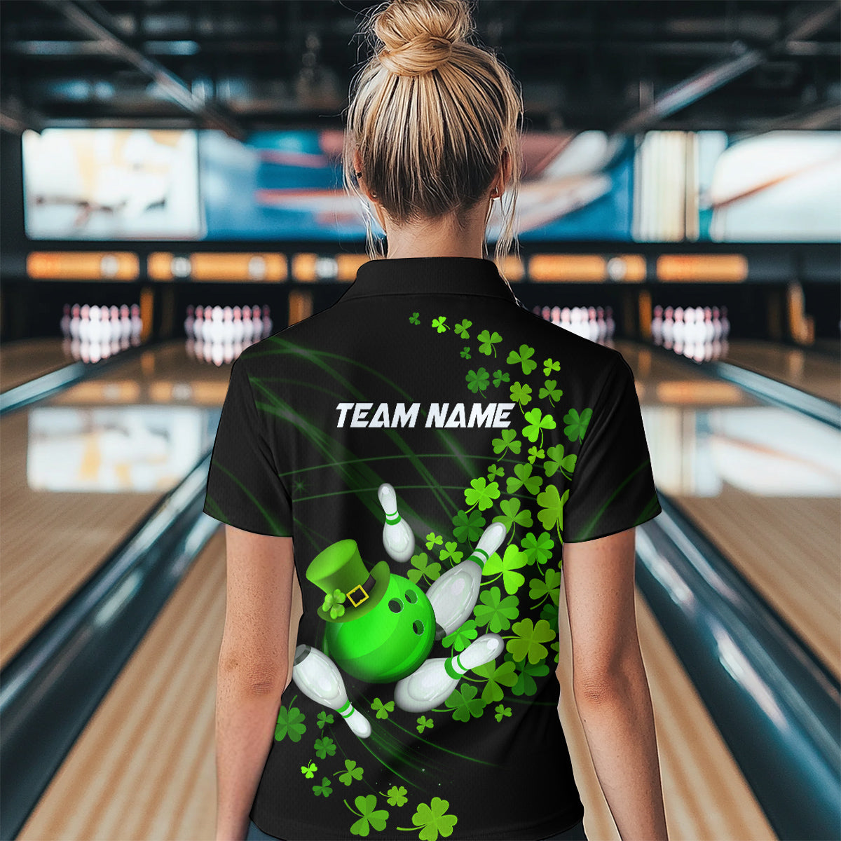 Green shamrock Lucky Bowling Shirt For Women Custom St Patrick day Bowling Team Uniform Bowlers Outfit NQS9453