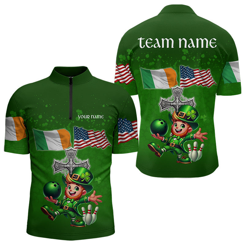 Irish American Flags Green Shamrock Bowling Shirts For Men Custom St Patrick Day Team Bowling Jerseys NQS9388
