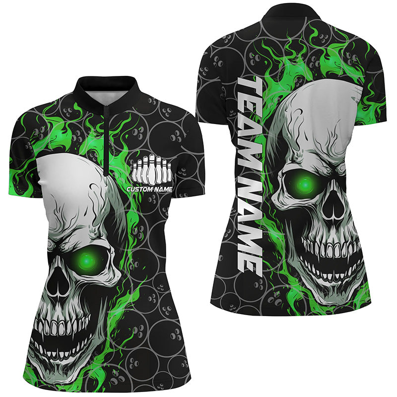 Personalized Skull Bowling Shirt For Women Custom Team'S Name Flame Bowler Jerseys | Green IPHW5008