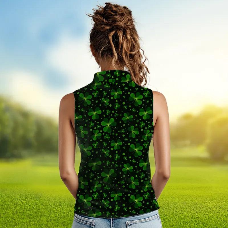 Black and Green shamrock pattern Lucky Women sleeveless polo shirt Custom St Patrick Day golf apparel NQS9648