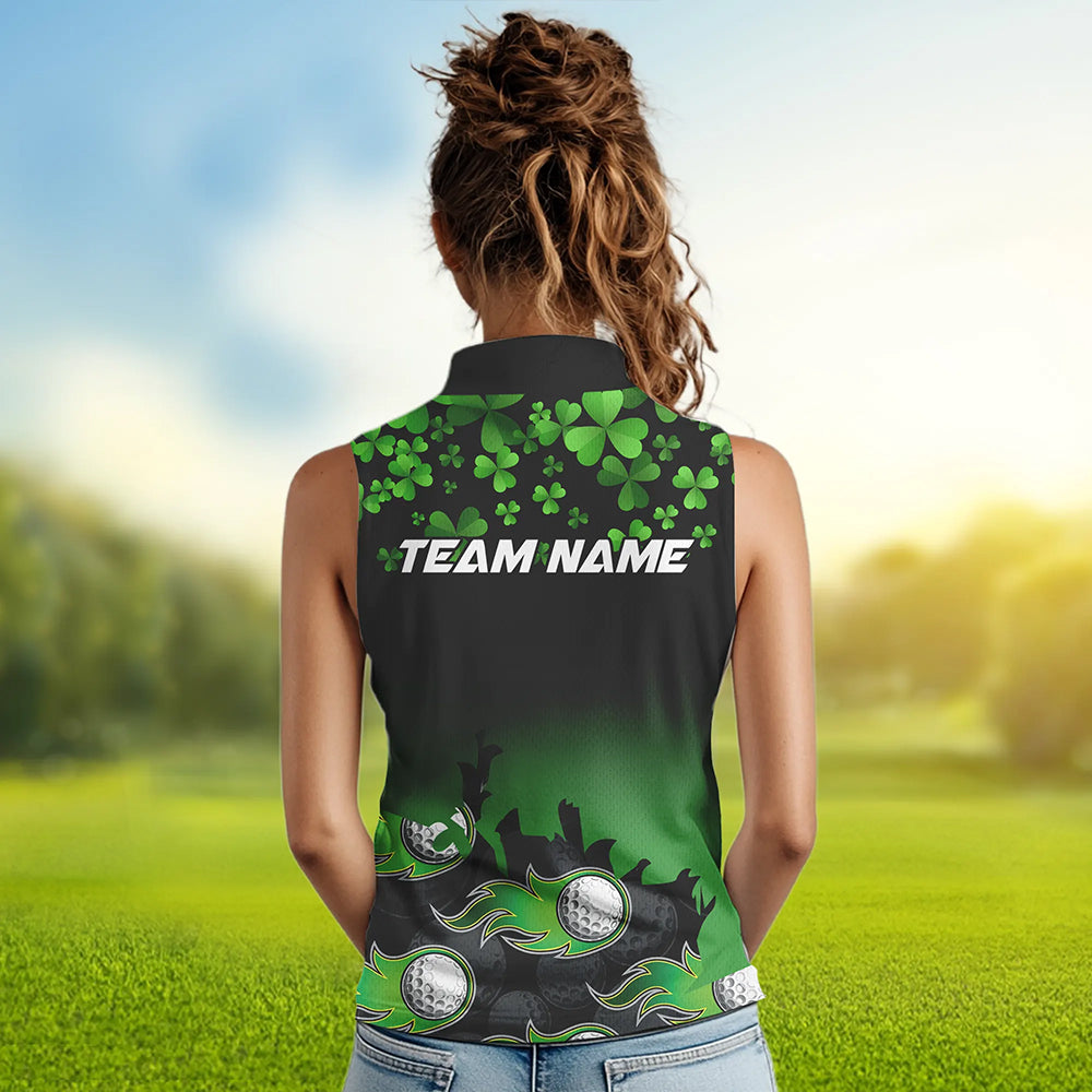 Green shamrock Flame Women sleeveless polo shirt Customize St Patrick Day team ladies golf shirts NQS9391