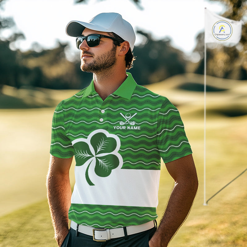 Green shamrock Lucky Mens polo golf shirts Custom St Patrick Day team golf jerseys NQS10508