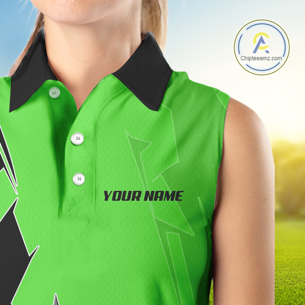 Women Sleeveless golf polo shirts custom green and black golf tops for ladies, best golf gifts NQS10063