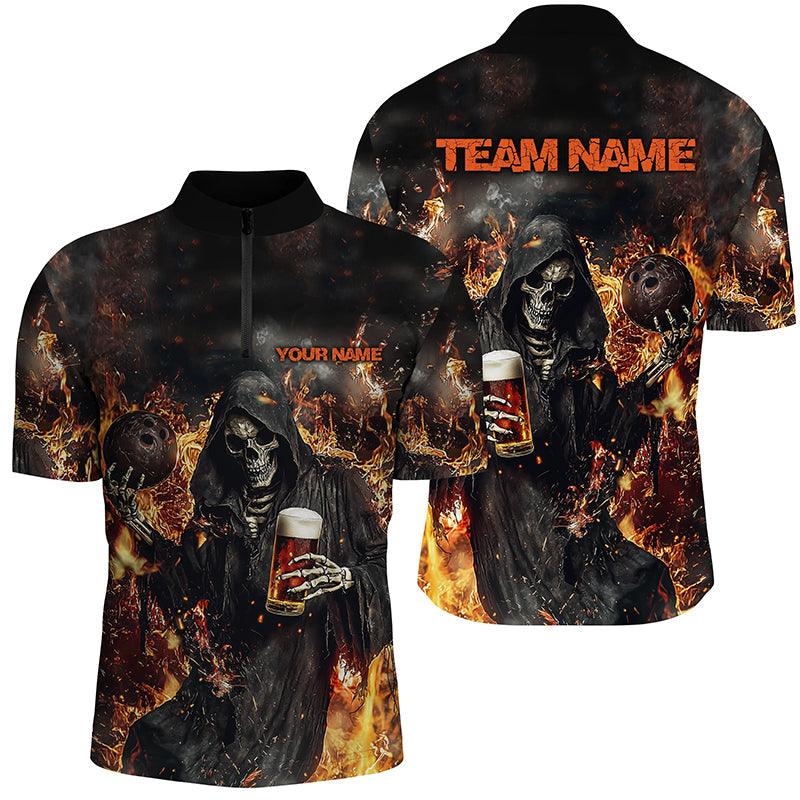 Bowling And Beer Custom Skull Bowling Shirts For Men, Gothic Halloween Style Outfits IPHW7632