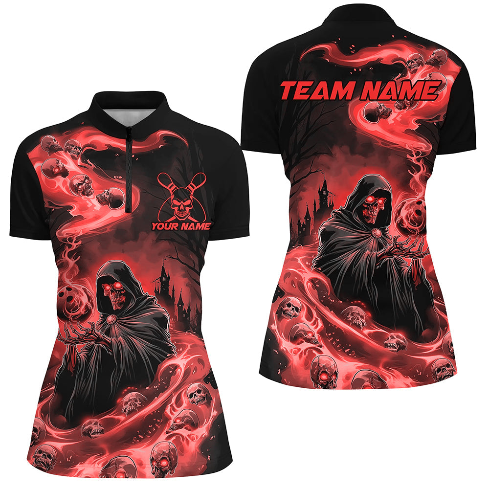 Black And Red Grim Reaper Custom Halloween Bowling Team Shirts For Men, Bowling Gifts IPHW7614