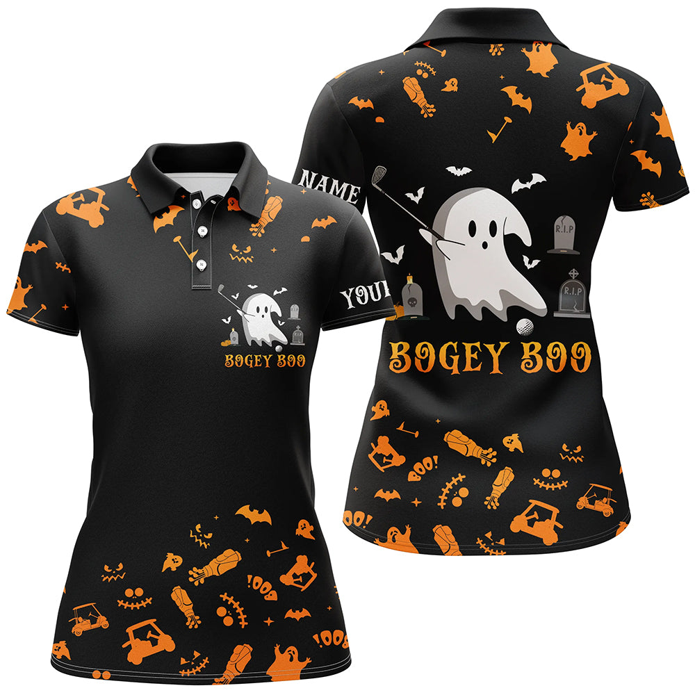 Funny black orange Halloween background women golf polo shirts custom Bogey Boo ladies golf tops NQS6393