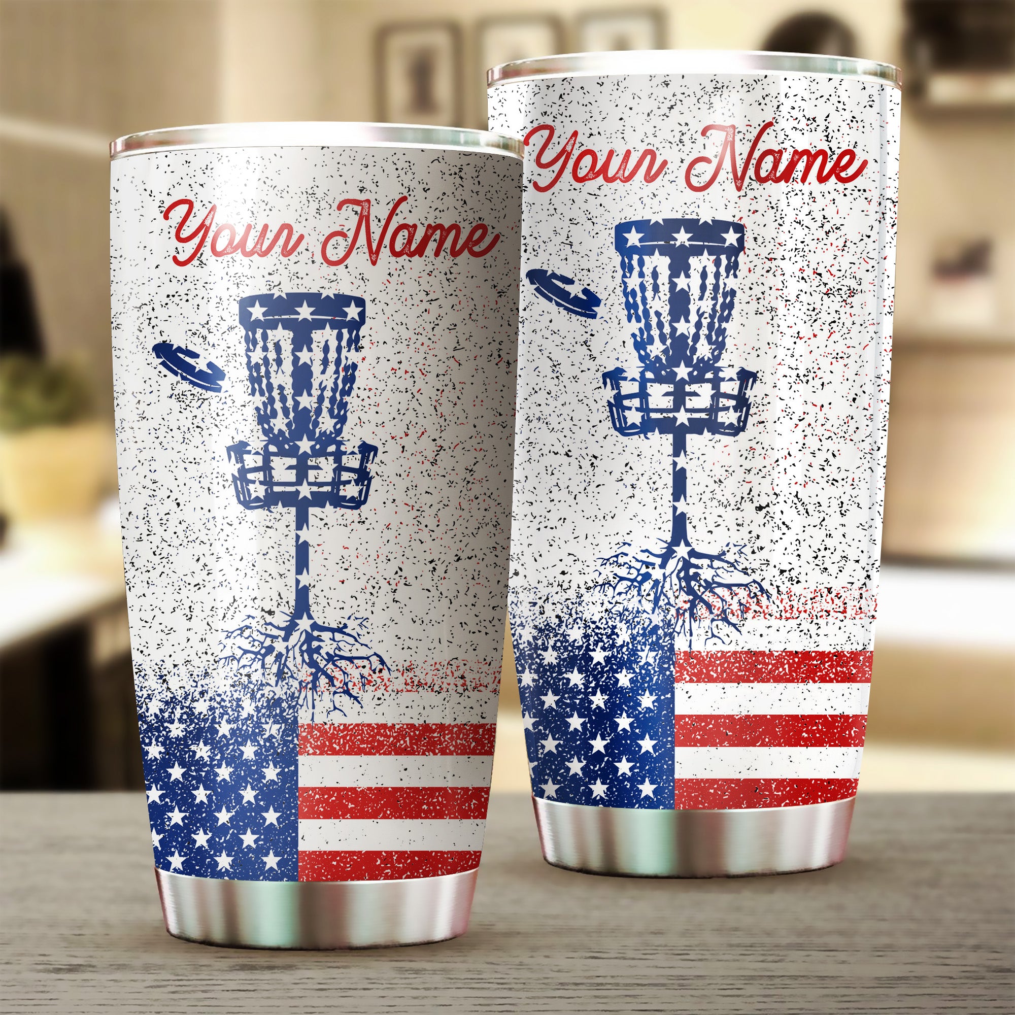 1PC American flag disc golf tumbler cup custom name patriot golf gift Stainless Steel Tumbler Cup NQS4642