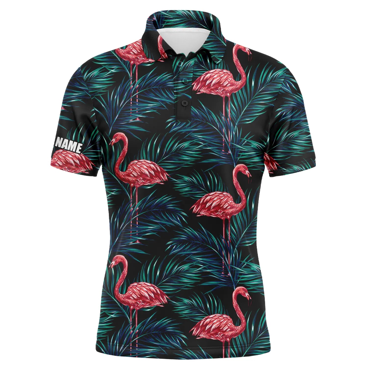 Mens golf polo shirts flamingo golf shirt tropical palm leaves pattern custom team golf polo shirts NQS4839