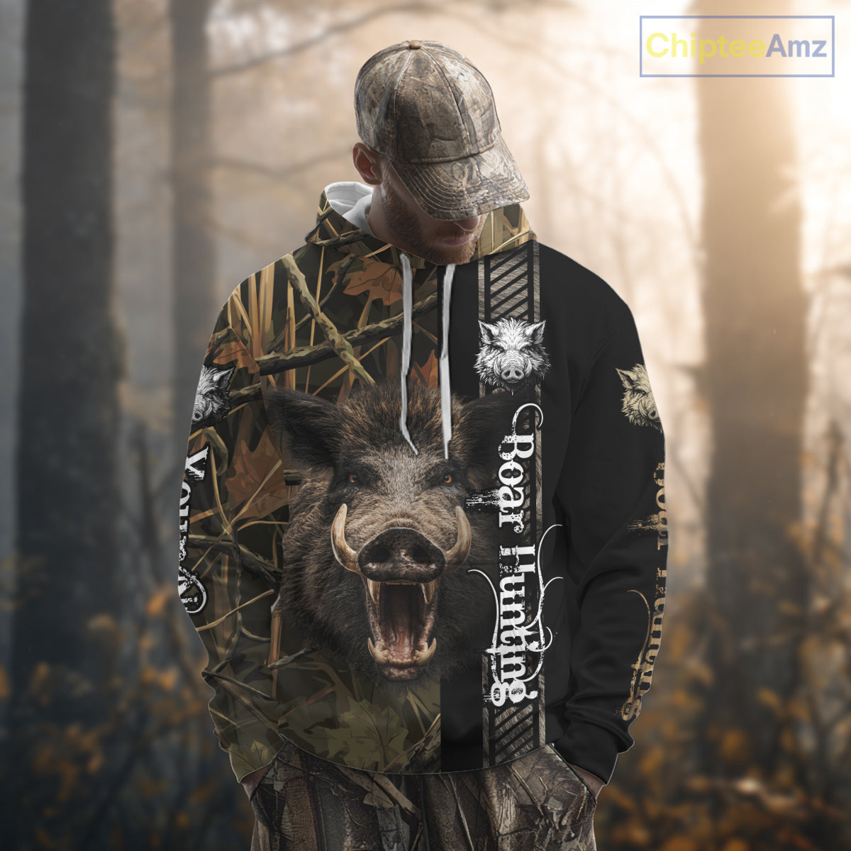 Personalized Wild Hog Hunting Camo Custom Name Best Gifts for Hunters, Boar Hunting Clothes NBT115