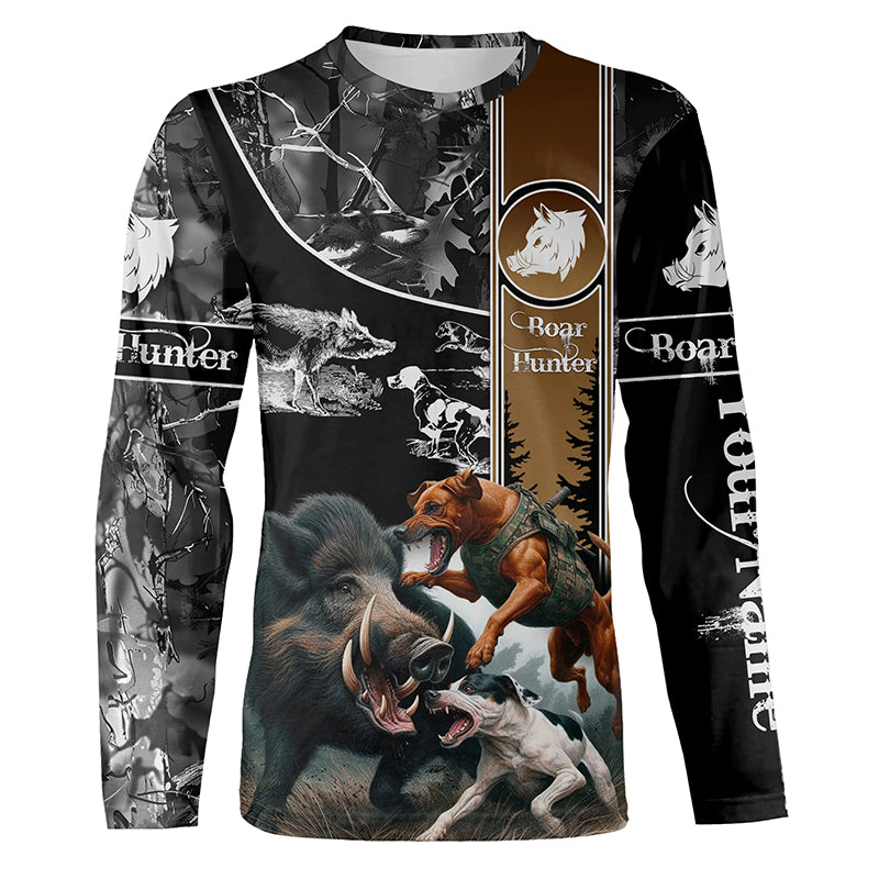Wild Boar Hunting with Dogs Camo Custom Name Shirts, Boar hunting shirt, Gift for hunter FSD570