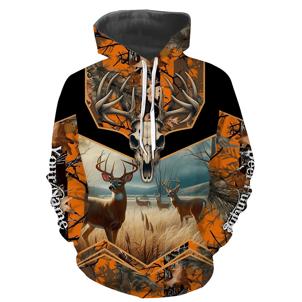Deer Hunting Camo Orange Black Custom Name 3D All over print shirts, personalized hunting gifts NQS811