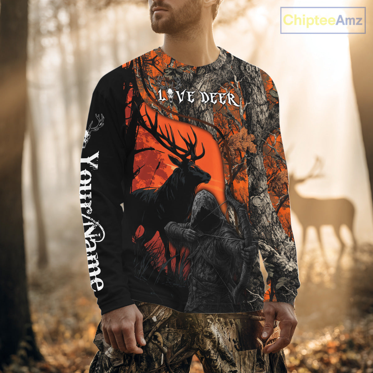 Inspired by the thrill of the hunt and the beauty of the outdoors, this shirt combines durability, comfort, and a unique hunting vibe. Customize it with your name or preferred design elements — from deer graphics to scenic landscapes — to create a one-of-a-kind piece. A perfect gift for passionate deer hunters and outdoor lovers, especially during hunting season.