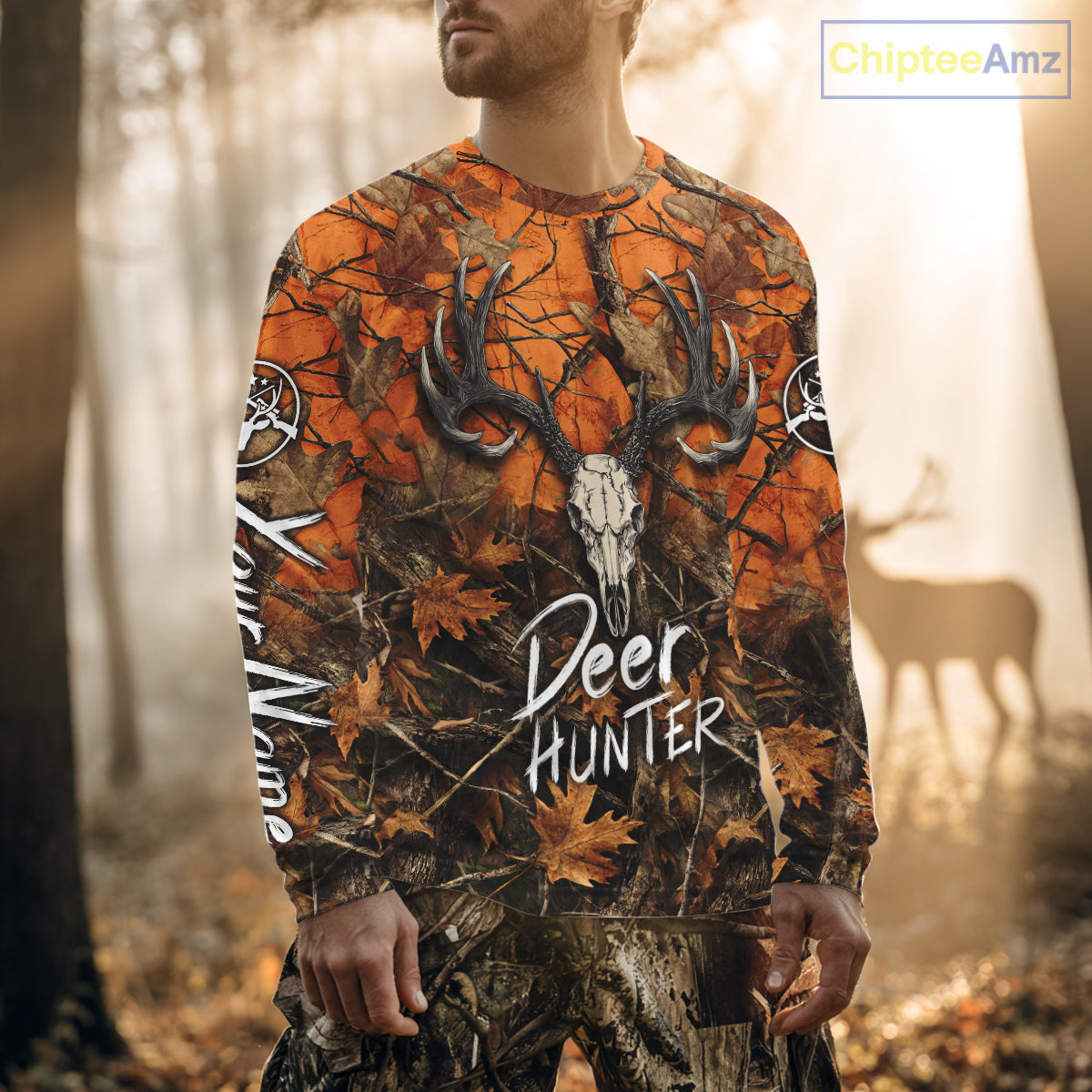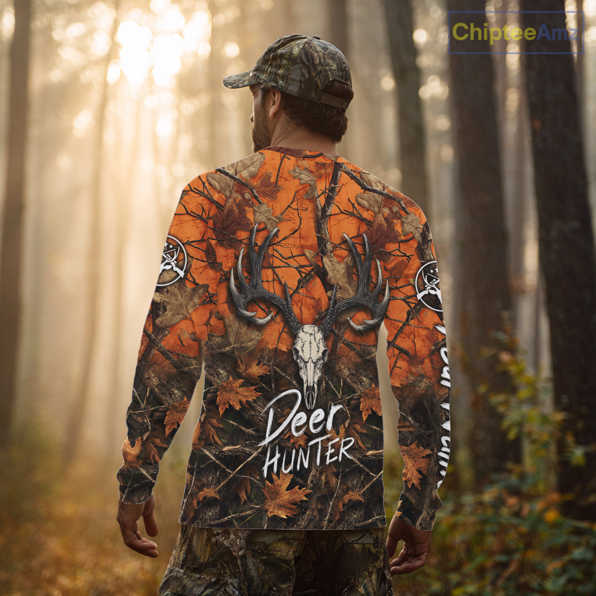 Deer Hunting Orange Camo Deer Skull Full Printing Custom Name Shirts, Custom Deer Hunting Shirt NBT144