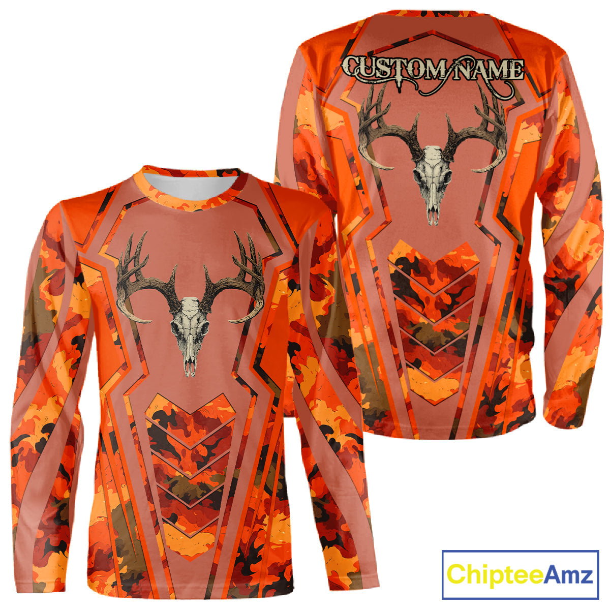 Deer Hunting Shirt Orange Camo 3D All Over Print Buck Head Custom Name Hunting Clothes NHT87