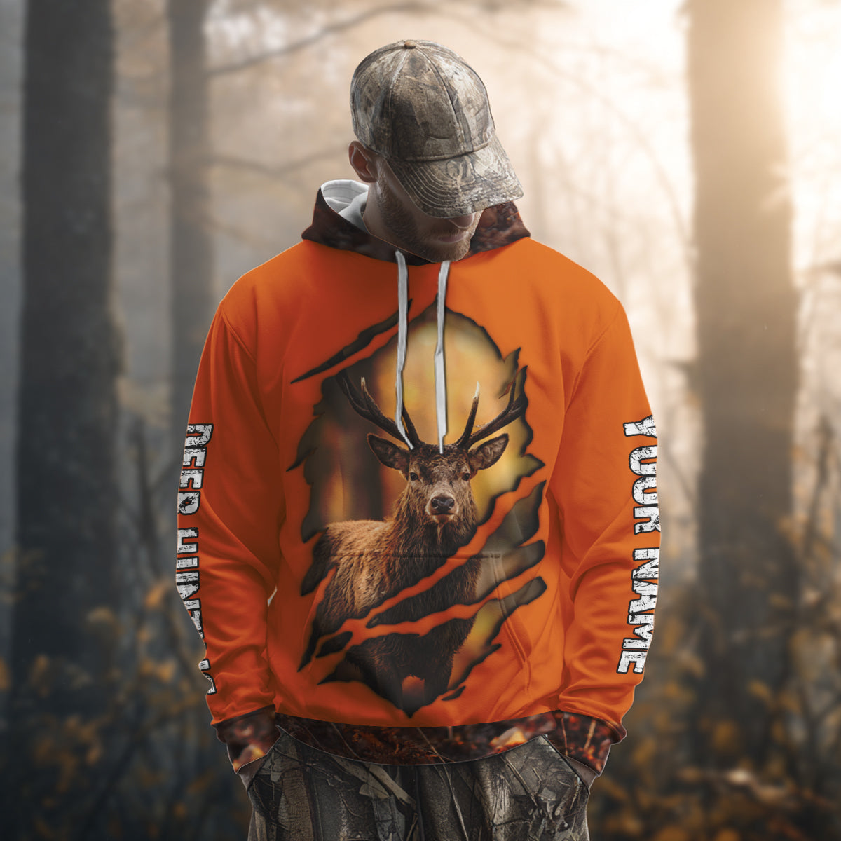 Deer Hunting Shirt Orange Forest Camo Hoodie, Long Sleeve Custom Name For Men NHT06