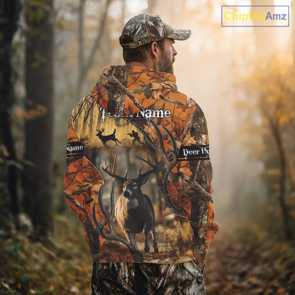Personalized Deer Hunting Hoodie/ Long sleeves Shirts. Designed for deer hunters and outdoor enthusiasts, this shirt blends style, comfort, breathable and funtionality in one. The unique hunting-inspired design can be personalized with your name, along with details like the American flag, camouflage patterns, and more - making it the perfect gift ideas for hunters during deer hunting season.ย