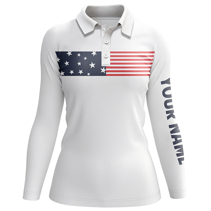 American flag white Womens golf polo shirts custom patriotic golf tops for womens, golf gifts NQS5893