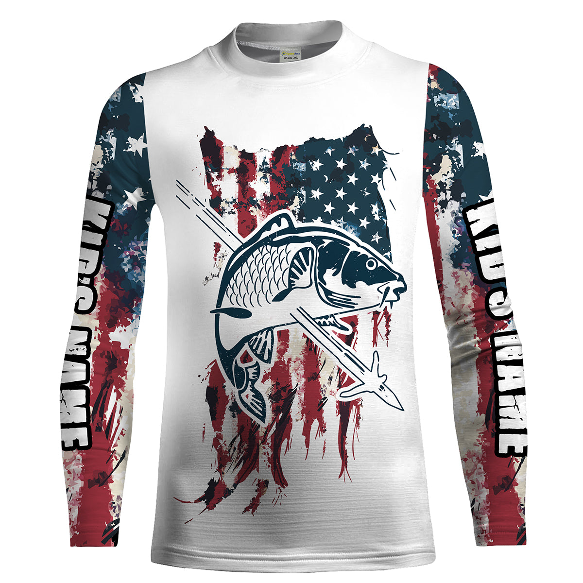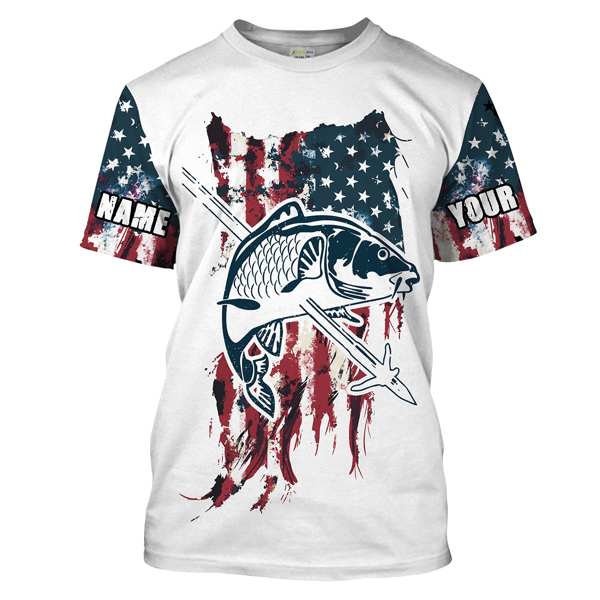 Carp Bowfishing American Flag Customized Name 3D All Over printed Shirts For Men, Women - Patriotic Bow Fishing Gifts FSD2241