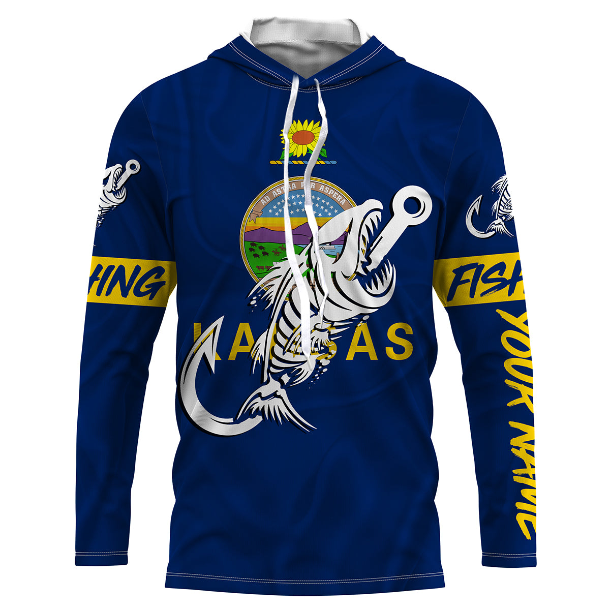 KS Fishing Custom Kansas Flag Fish hook skull Custom sun protection fishing shirts for men, women NQS3349