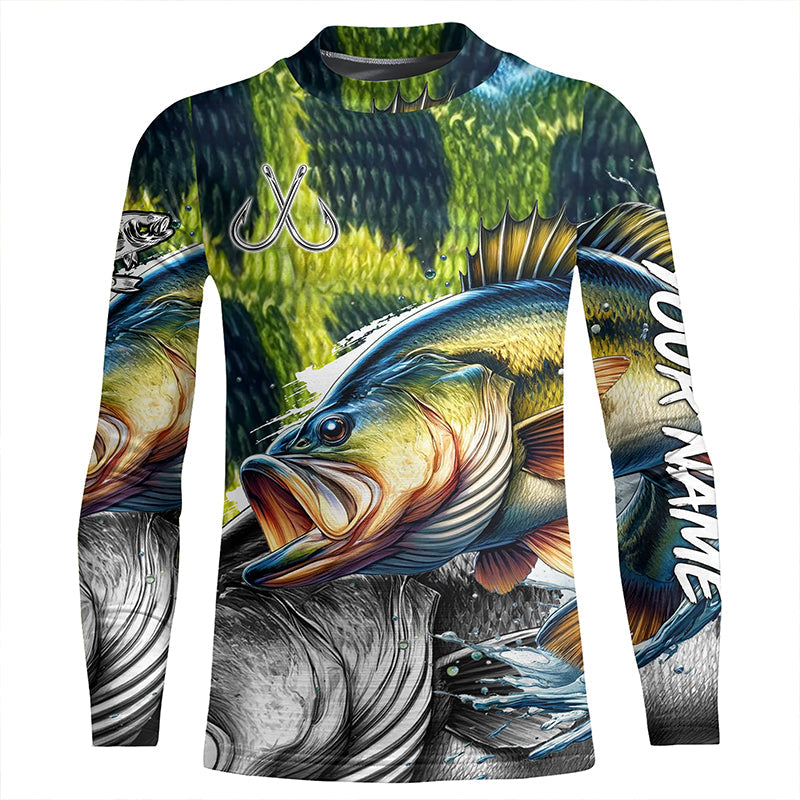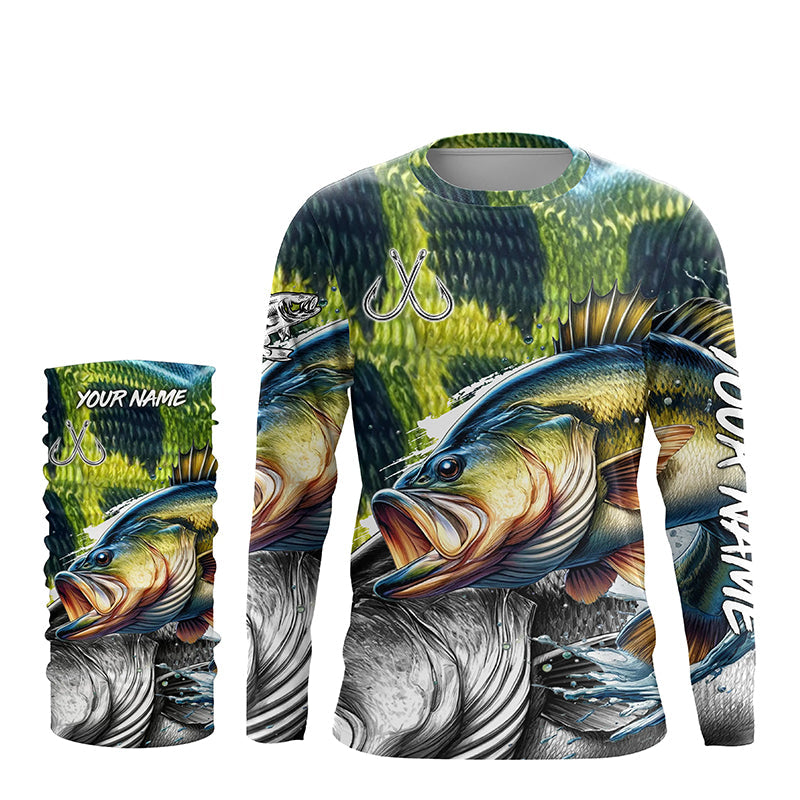 Largemouth Bass Fishing green scales custom UV protection long sleeves fishing shirts for Men, Women NQS7881