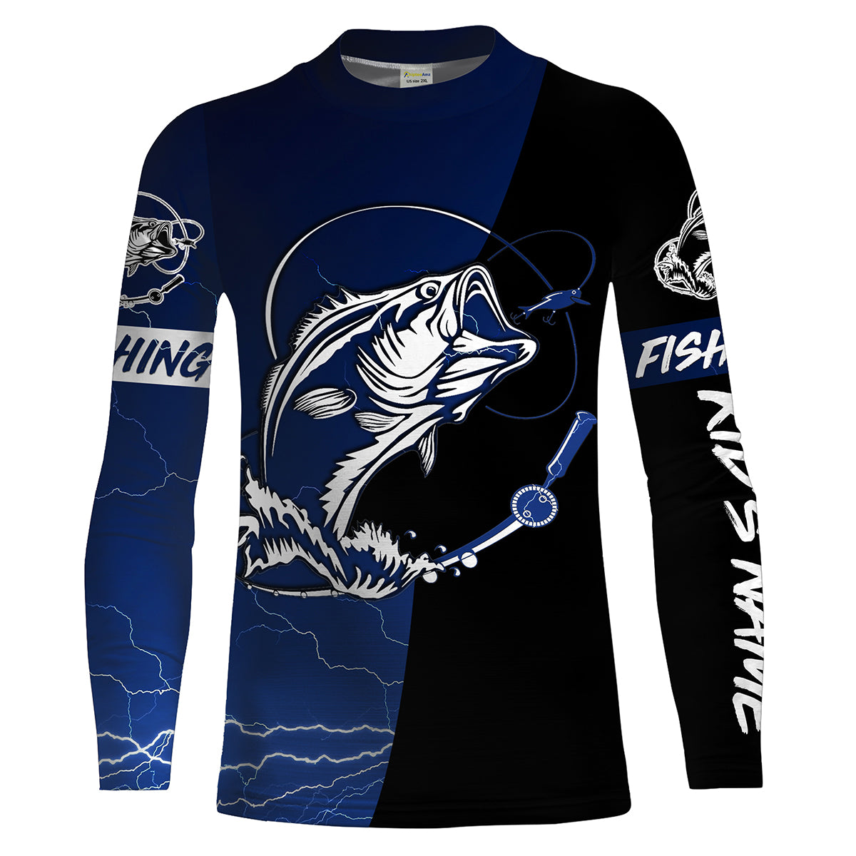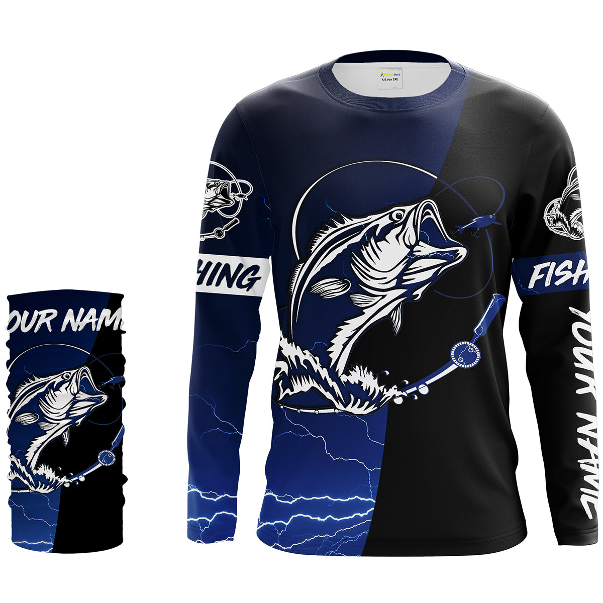 Largemouth Bass Fishing tattoo blue camo black Custom name UPF30+ performance fishing shirts fishing gift for men, women NQS2049