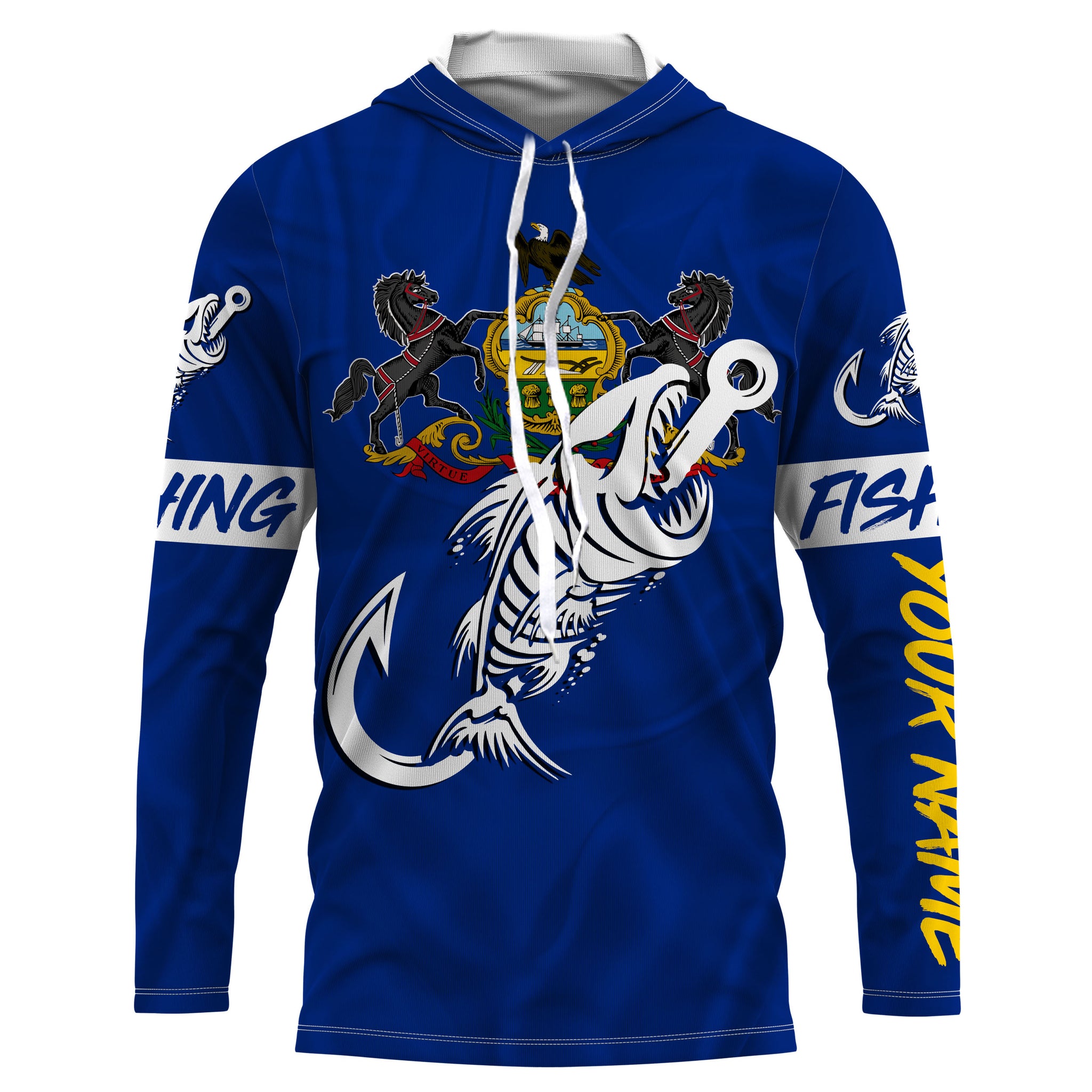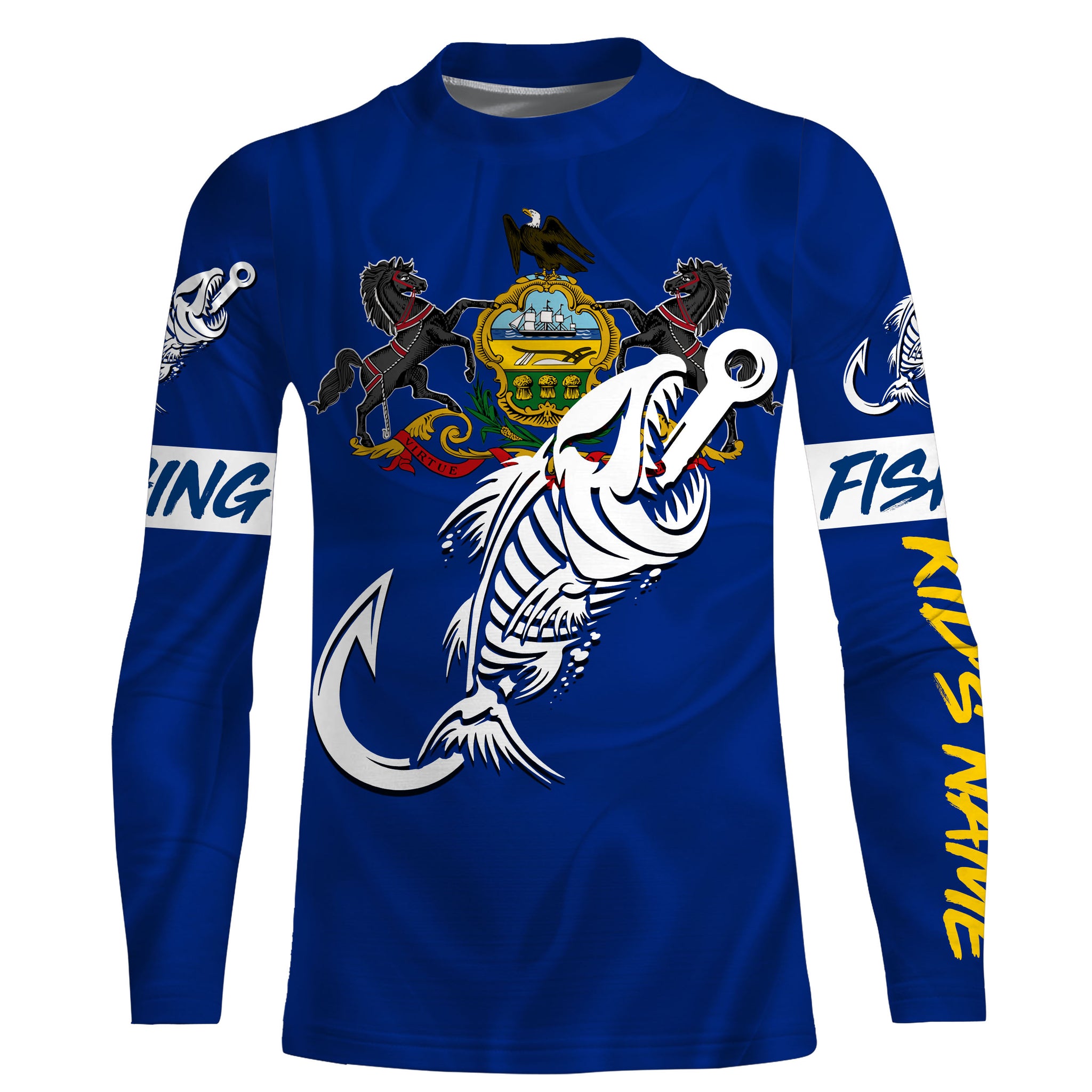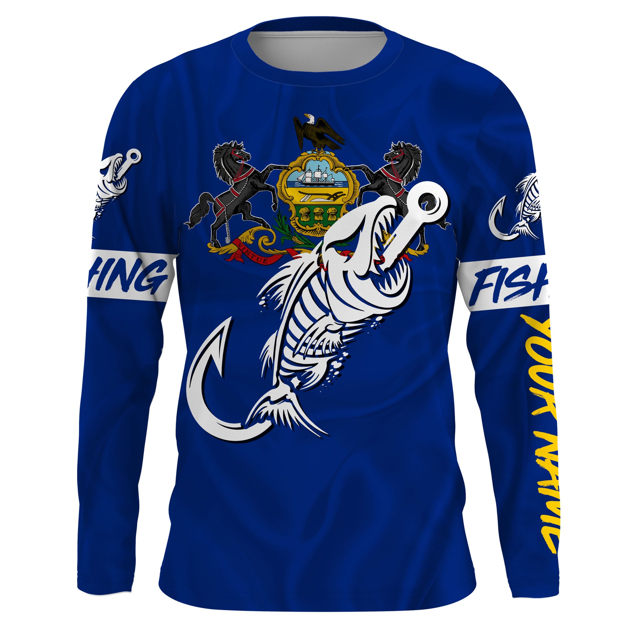 PA Pennsylvania Fishing Flag Fish hook skull Custom sun protection fishing shirts for men, women, kid NQS3404