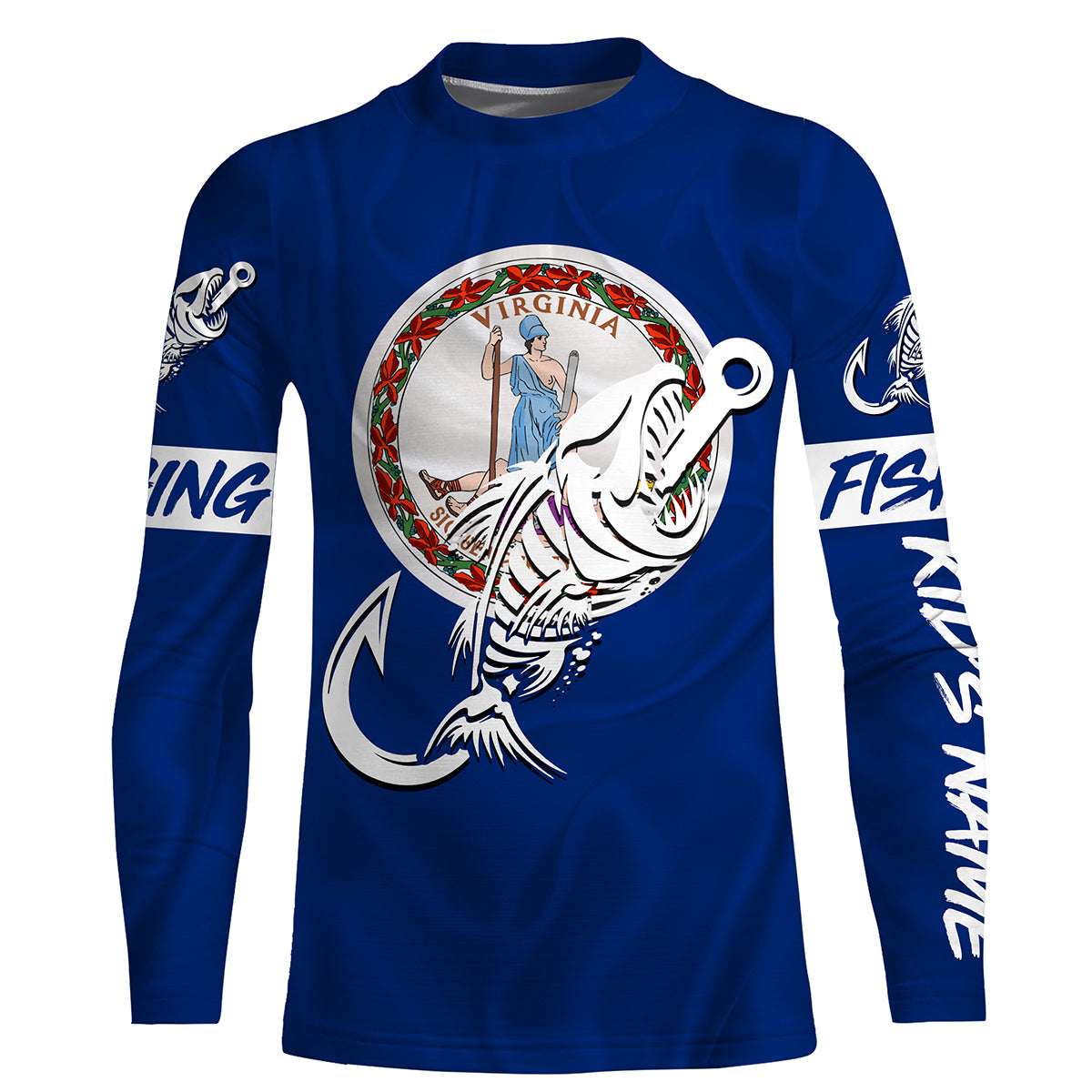 VA Fishing Custom Virginia Flag Fish hook skull Custom sun protection fishing shirts for men, women NQS3353