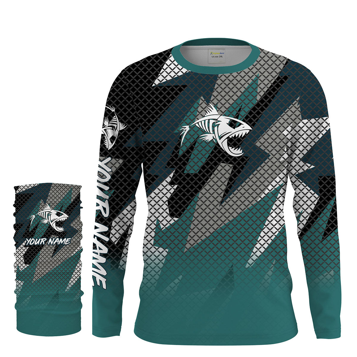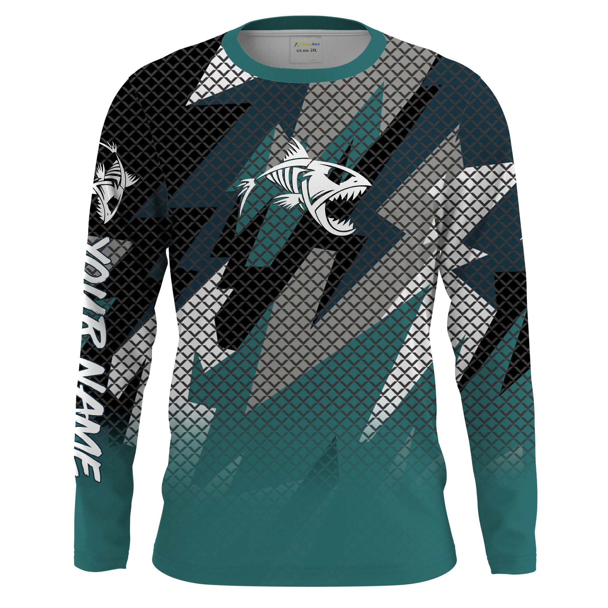 Fish Skeleton Camo Long Sleeve Tshirt Performance Fishing Shirts with UV Protection - Personalized Fishing Gifts FSD2230