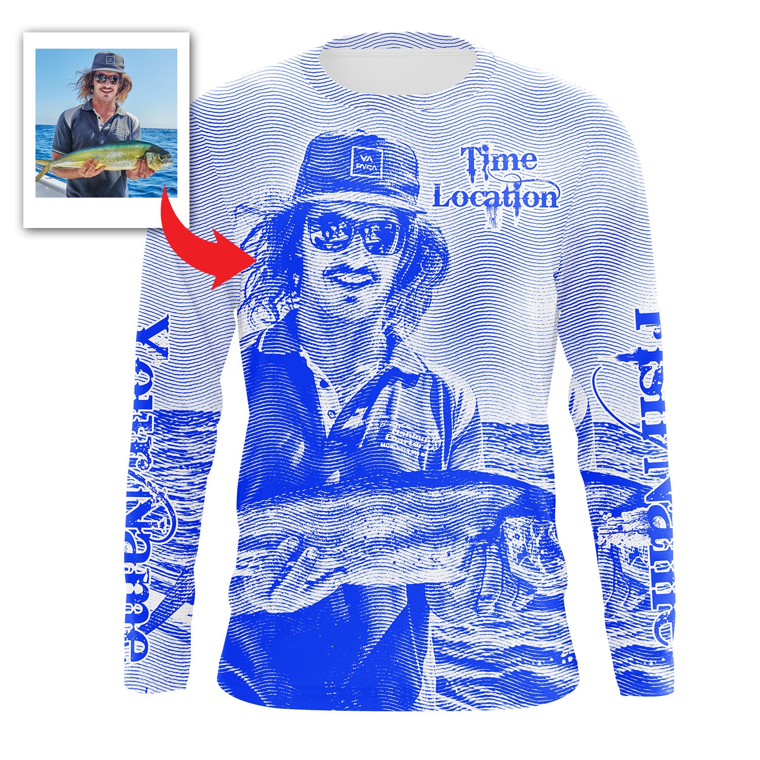 Fishing Shirt Custom Name, Image, Time, Location 3D UV protection Shirts UPF 30+ Fishing gift| Blue - TMTS050