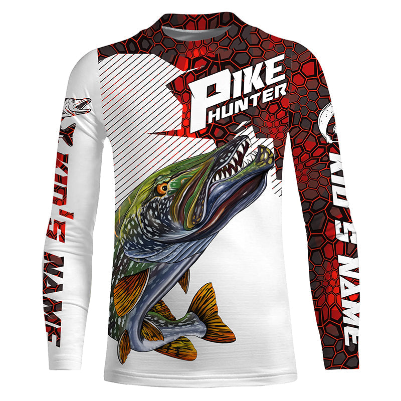 Pike Hunter Custom Nothern Pike Fishing Jerseys, Pike Long Sleeve Fishing Shirts | Red Camo IPHW3835