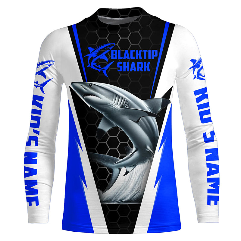 Blacktip Shark Fishing Custom Long Sleeve Performance Shirts, Shark Fishing Apparel | Blue IPHW6305