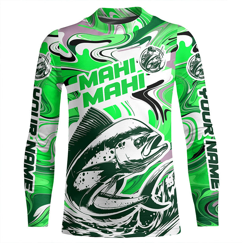 Custom Mahi Mahi Long Sleeve Uv Protection Fishing Shirts, Mahimahi Performance Shirts | Green Camo IPHW6150