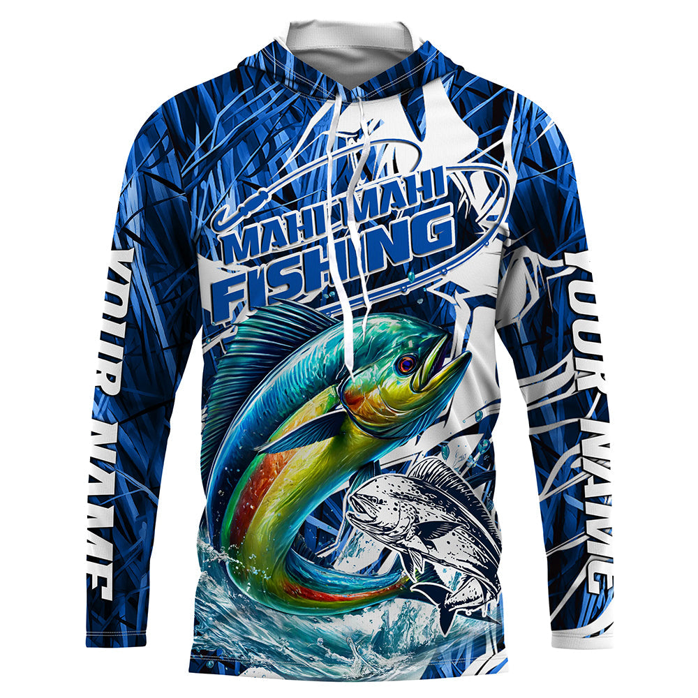 Custom Mahi Mahi Performance Fishing Shirts, Mahimahi Long Sleeve Fishing Shirts | Blue Camo IPHW6839