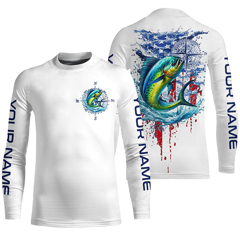 American Flag Mahi Mahi Fishing Custom Long Sleeve Fishing Shirts, Patriotic Saltwater Fishing Shirt IPHW7041
