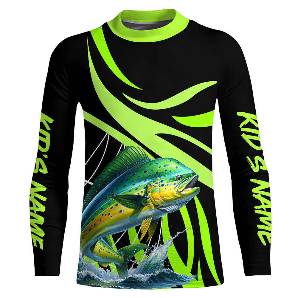 Personalized Mahi mahi ( Dorado) Long Sleeve Fishing Shirts, Tournament Fishing Jerseys | Green NQS7448