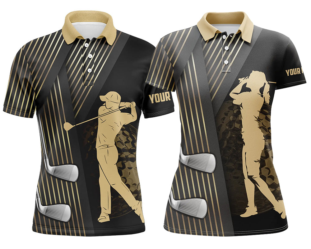 Black and gold matching golf polos for couples custom golf clubs team golf shirt, matching golf shirts NQS7258