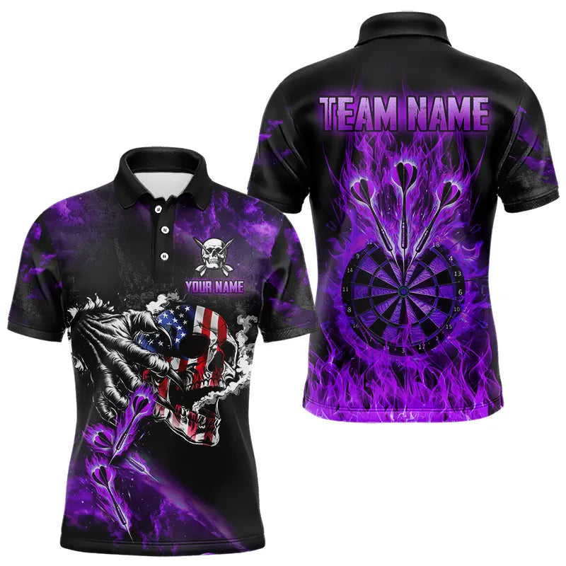 Fire Flame Darts Board American Flag Skull Dart Shirts For Men Custom Darts Team Jerseys |Purple TDM2982