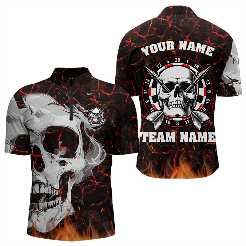 Personalized Red Glowing Fire Crack Skull Dart Shirts Custom Scary Dart Shirts For Men Dart Jersey TDM3267