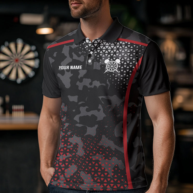 Black And Red Camo Dart Shirt With Pocket Option For Men Custom Darts Jersey TDM3787