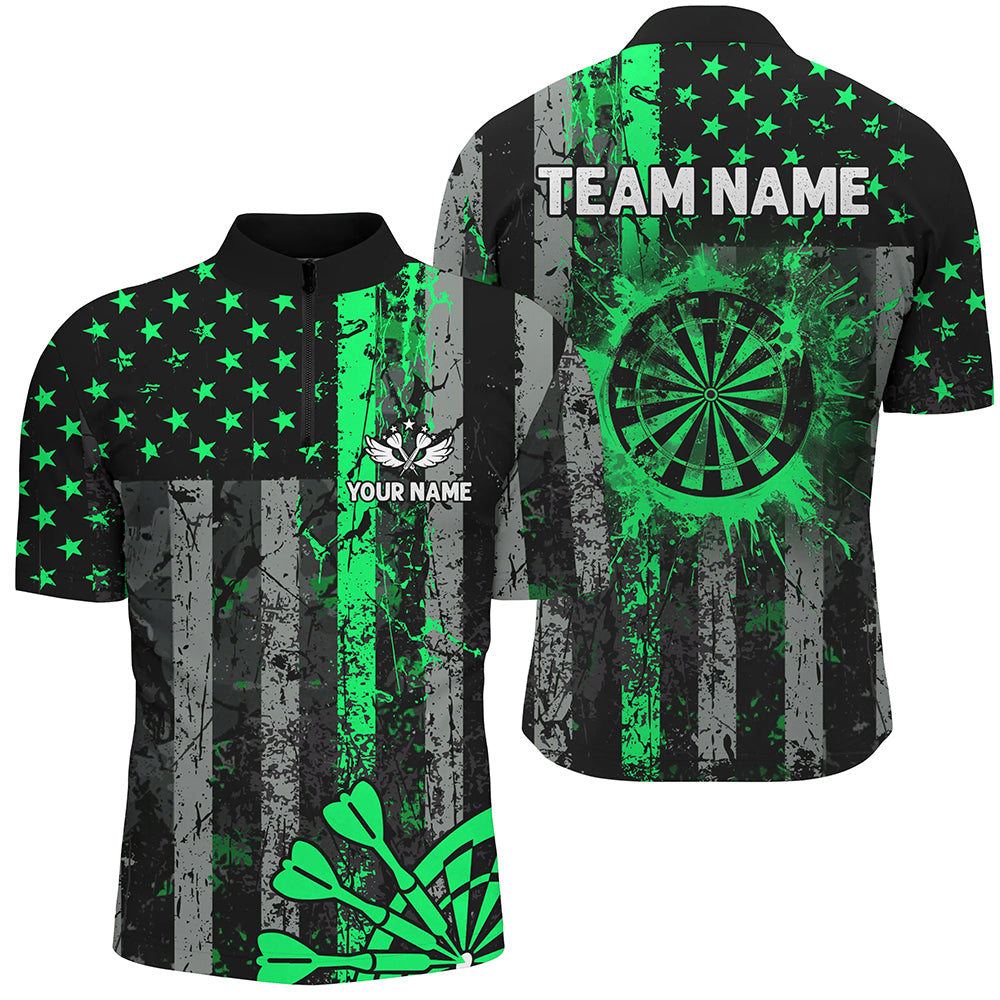 Custom Green Grunge US Flag Patriotic Darts Shirt For Men, Retro Darts Board Darts Team Jerseys TDM2182